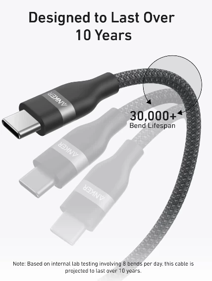 كابل يو اس بي-سي الى يو اس بي- سي من انكر، 0.9 متر، 240 واط، A82E2H11 - أسود