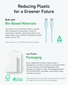 • The exterior of bio-based cables is around 40% composed of a proprietary mixture of plant-based materials.