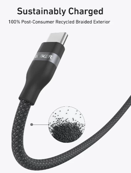 Anker USB-C to USB-C Cable 240W (Upcycled-Braided) (1.8m/6ft) -Black A82E2H12