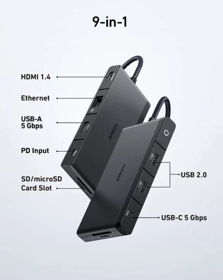 Anker 552 USB-C Hub (9-in-1, 4K HDMI), A8373H11 - Black
