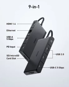 • Massive Expansion with 9 ports, allowing you to transfer data in seconds, stream media in unrivaled clarity, provide high-speed pass-through charging, and more.